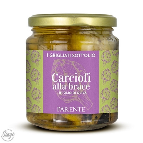 Artichauts grillés et conservés à l'huile d'olive en pot de 280g.