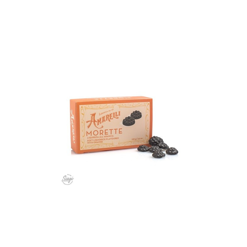Réglisse tendre parfumée à l'orange présentée en boîte carton de 60 g.