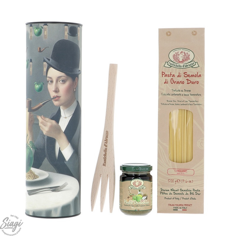 * un décor inspiré de l'oeuvre du peintre belge Magritte ""à la sauce Rustichella"" ! * une présentation originale et impactante * un kit tout en un pratique, idéal pour un cadeau.