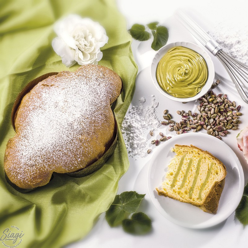 Farine de blé, crème liqueur de pistache 18% [sirop de glucose, sucre, eau, liqueur de pistache 1,8% (eau, sucre, alcool, sirop de glucose, jaune d'œuf, lait poudre écrémé, pistache verte de Bronte 0,02%, arômes, distillat de rhum, colorant : E141), pâte de pistache 1,7 %, matière grasse végétale (tournesol, coco, beurre de cacao), lait en poudre écrémé, sel, amidon modifié, arômes naturels, sucre caramélisé, gélifiant : pectine ; colorants: E170, E141, E100, E160a, E133; conservateur : sorbate de potassium ; émulsifiant : mono et diglycérides d'acides gras; antioxydant : acide ascorbique], sucre, œufs, beurre, levain naturel (farine de blé, eau), jaune d'œuf, émulsifiant : mono et diglycérides des acides gras ; fructose, lait, sel, poudre de gousse de vanille de Madagascar.