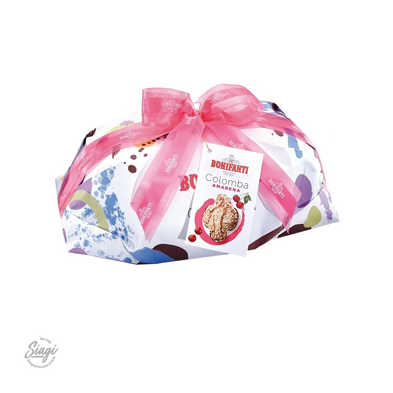 Farine de blé, moitiés de cerises amarena confites (15,2 %) [cerises 48 %, sirop de glucose‑fructose, saccharose, jus d’amarena concentré 5 %, correcteur d’acidité : acide citrique, colorant : anthocyanes E163, arômes, conservateur : anhydride sulfureux E220 (comme résidu)], sucre, beurre (lait), sucre en grains (7,5 %), jaune d’œuf frais, levain naturel (farine de blé, eau), amandes (2,8 %), blanc d’œuf frais, noisettes (1,5 %), farine de riz et riz précuit, miel, émulsifiant : mono‑ et diglycérides d’acides gras, sucre glace (sucre, amidon de blé), sirop de sucre inverti, lait en poudre (lait), sel, amandes amères (0,3 %), amidon de riz, arômes, gousses de vanille de madagascar.