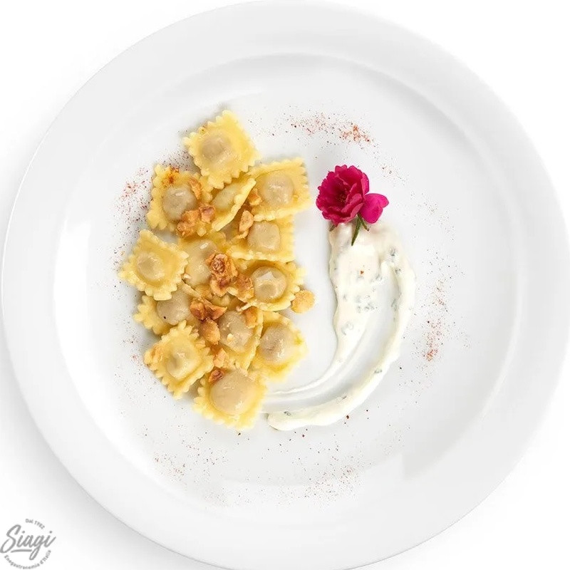 Les Agnolottino delle Langhe sont des pâtes SUPER fraiches aux oeufs, de petit format, avec une farce à la viande braisée (boeuf et porc) et aux noisettes IGP du Piémont.