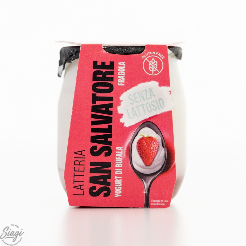 Yaourt au lait entier de bufflonne sur lit de fruits : fraise. Texture crémeuse et veloutée et saveur fruitée. Teneur en lactose inférieure à 0,01g pour 100g. Carton de 6 pots en verre de 110g.